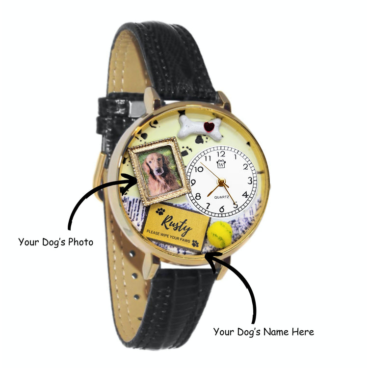 Our NEW Whimsical Gifts Personalized Dog Portrait Watch is perfect for current dog owners or those who've recently lost a beloved four-legged friend. Featuring your dog's photo in a gold frame, your dog's name personalized on mat with choice of "Please Wipe Your Paws", "Forever in My Heart" or "Forever in Our Hearts", tiny tennis ball and heart-adorned dog bone. Make sure to include your Dog's name, choice of mat, and to email your dog's photo to us at email below.