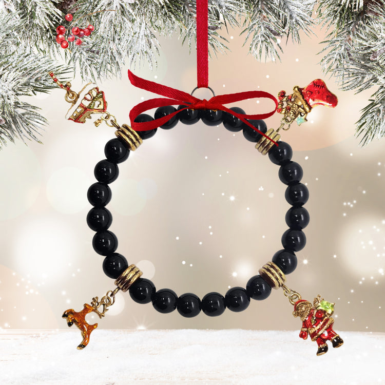 Christmas Genuine Onyx Charm Bracelet | Handmade in USA | 4 Hand-Painted Charms