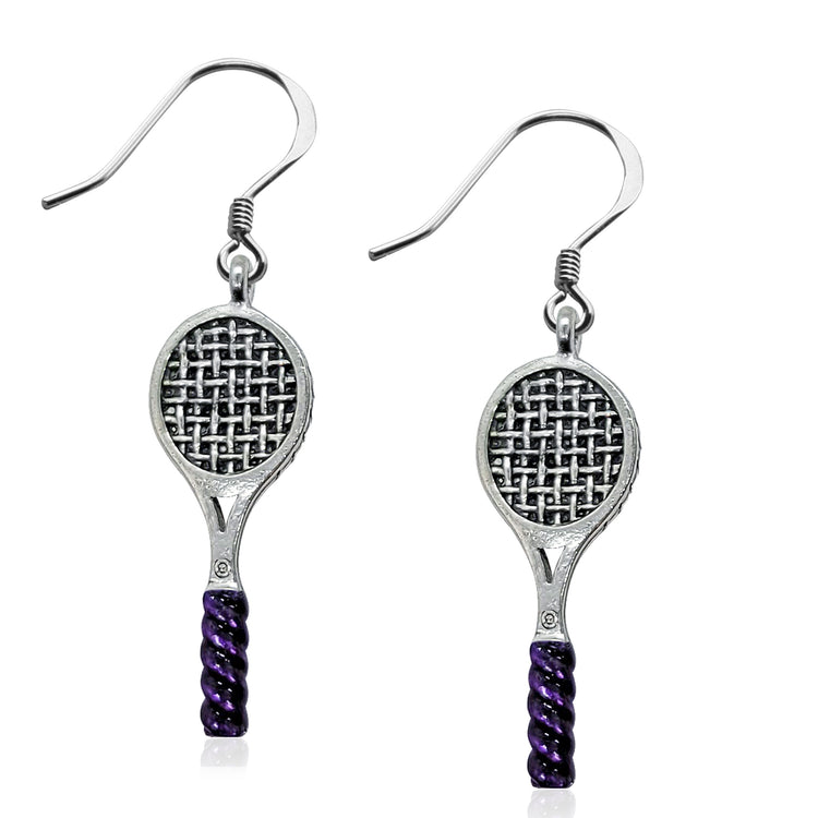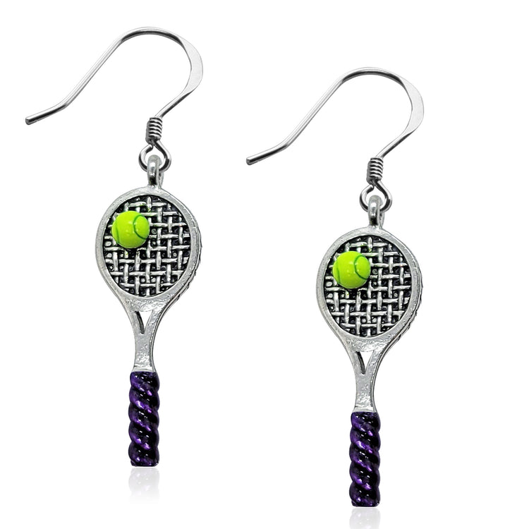 You'll just "love" our super-cute Tennis Racket and Ball Charm Earrings, both on and off the court! Measuring 33 mm x 13 mm, our Tennis Racket and Ball earrings are made in the USA from lead-free pewter and plated in an Antique Silver finish before being hand-painted and assembled by our team. Earring hooks are sterling silver French wire and come with rubber backs.