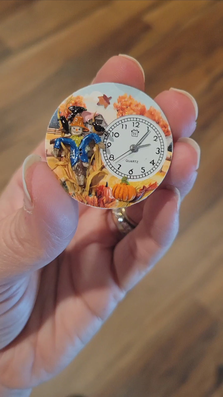 We love fall here in metro Atlanta, and our NEW Scarecrow Watch is the perfect gift for everyone who looks forward to sweater weather! Handmade in the USA by our team of artists using handcrafted miniatures, our Scarecrow Watch features a not-so-scary scarecrow who seems to be attracting, not repelling, a murder of crows among long-harvested corn stalks, pumpkins and fall leaves. Whimsical Gifts watches are wearable works of art and make a thoughtful gift for any occasion!