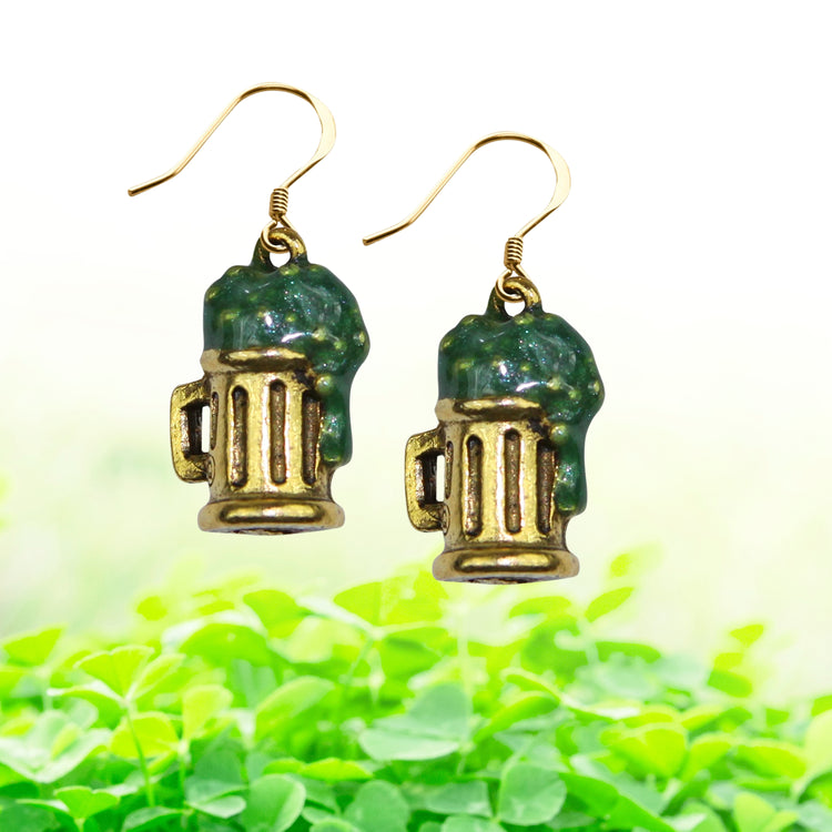 Go green or go home! Our St. Patrick's Day Green Beer Mug Charm Earrings are hand cast in America from lead-free pewter and also plated, hand-painted and assembled in the USA. The perfect way to express your love of St. Patrick's Day and all things green, including beer! Earring hooks are gold plated French wire and include rubber backs. Cheers!
