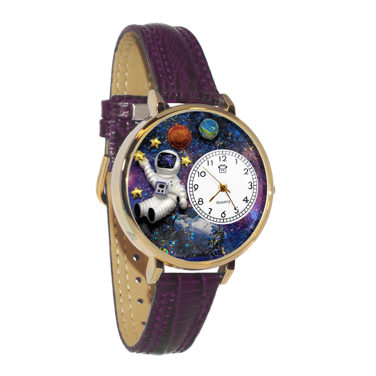 Our NEW Astronaut Watch is simply out of this world, and makes the perfect gift for future and current Aerospace Engineers, Space-X Geeks and NASA types, Astronomers, and any lover of outer space! Made in the USA by our team of artists using handcrafted miniatures, our Astronaut Watch features a an American Astronaut on a spacewalk literally reaching for the stars within a glittery universe with planets, all atop a Space Station background. The perfect way to make a statement and express your love of the cosmos!