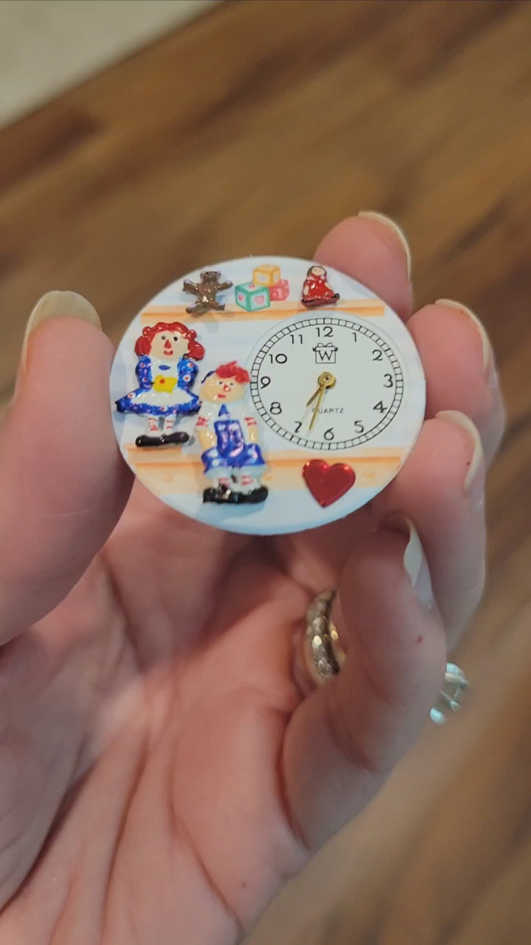 Perfect for lovers of nostalgia and classic toys, our Raggedy Ann and Andy Watch is handmade in the USA by our team of artists and features hand-painted miniatures of Raggedy Ann and Andy on a shelf of toys, including a tiny doll and teddy bear. Whimsical Gifts watches are wearable works of art and a thoughtful gift for any occasion!